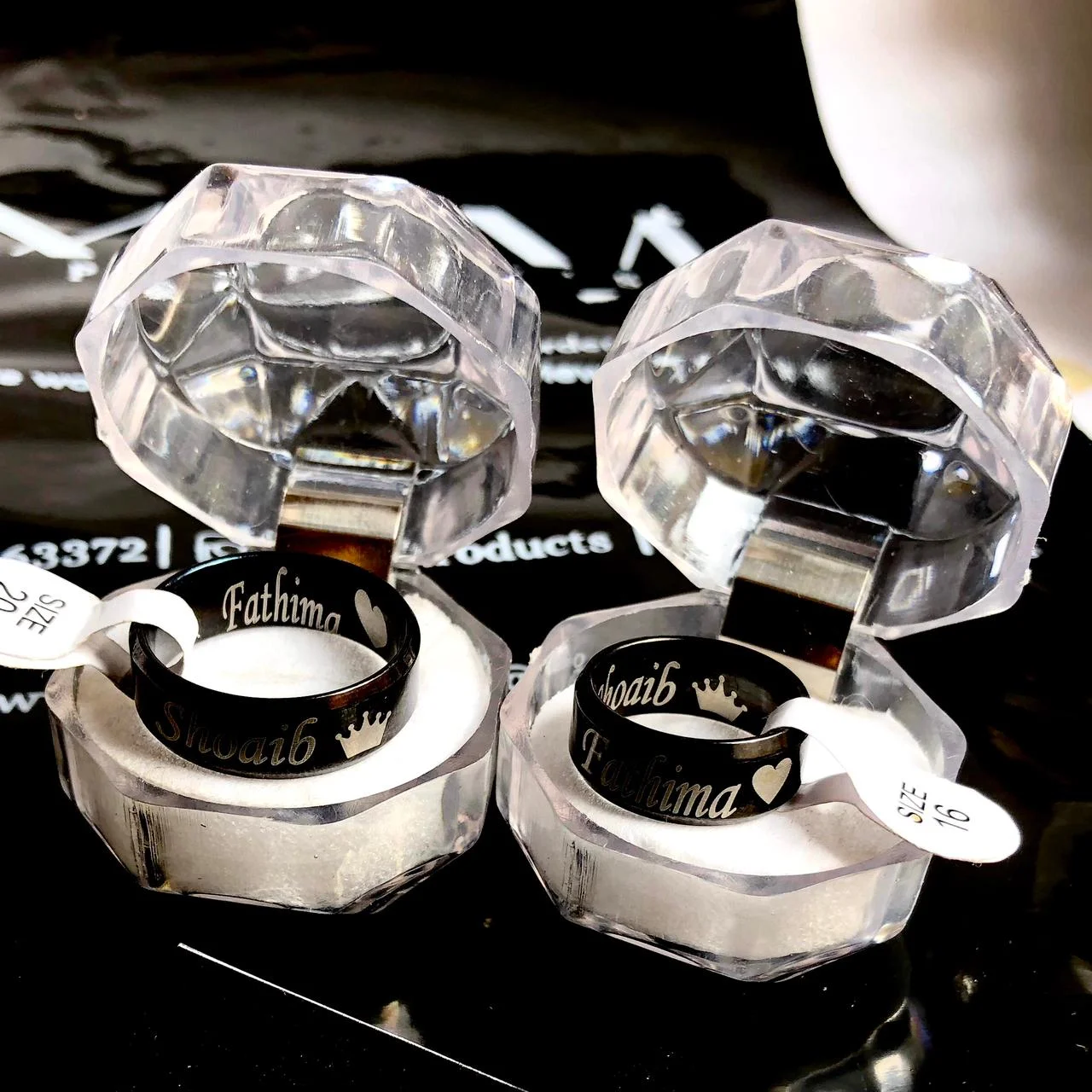 Each personalized couple ring set is packed in a decorative gift box , making it a thoughtful gift for weddings, Valentine’s Day, birthdays, or special moments.