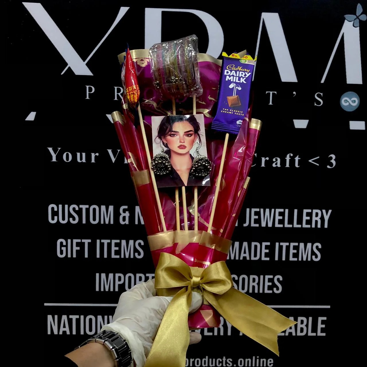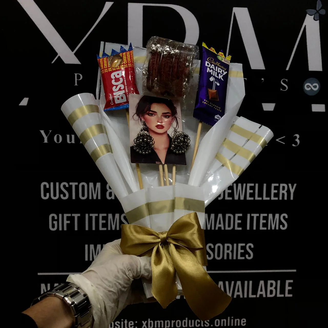 Surprise your loved ones with our stunning and customizable gift bouquets, designed to make every occasion memorable. Our bouquets are carefully handcrafted using a mix of flowers, chocolates, accessories, and decorative elements, all wrapped in premium packaging for a luxurious presentation.
